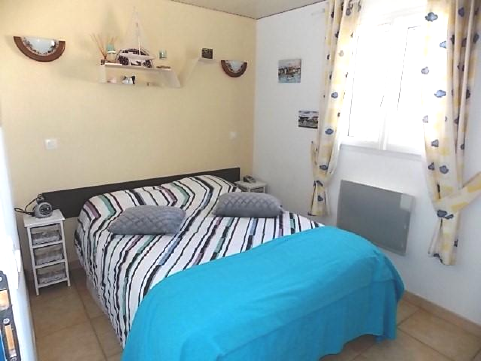 A 600m de la plage et 400m des commerces, cette maison comprend un séjour avec une cuisine ouverte aménagée, un bureau, deux chambres, une salle d'eau, un wc séparé, chauffage électrique et un poêle à granulés. Indépendant une annexe de 30m² env comprenant un séjour coin cuisine, deux chambres, une salle d'eau avec wc, attenant; une buanderie, un garage à vélo, un abri de jardin et un forage.