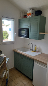 A 250m de la plage, cette petite maison de 25m² comprend une pièce de vie, une salle d'eau avec wc. Une cour dallée de 20m² env et une place de parking.