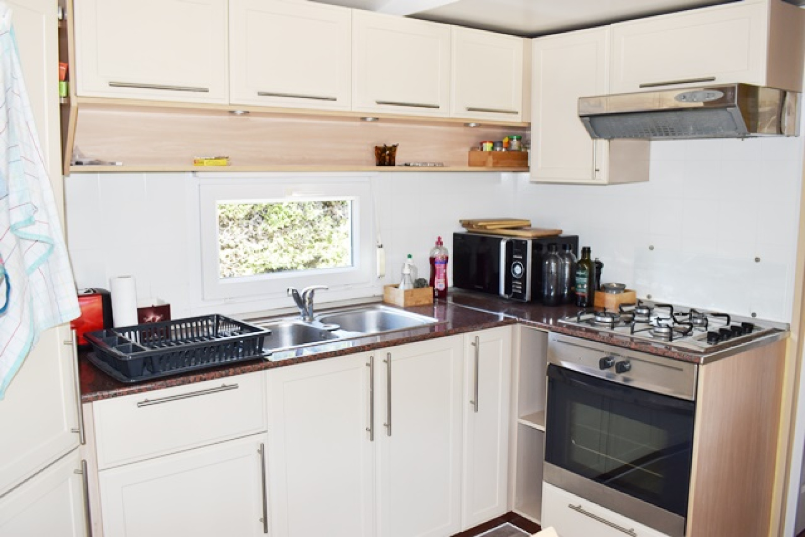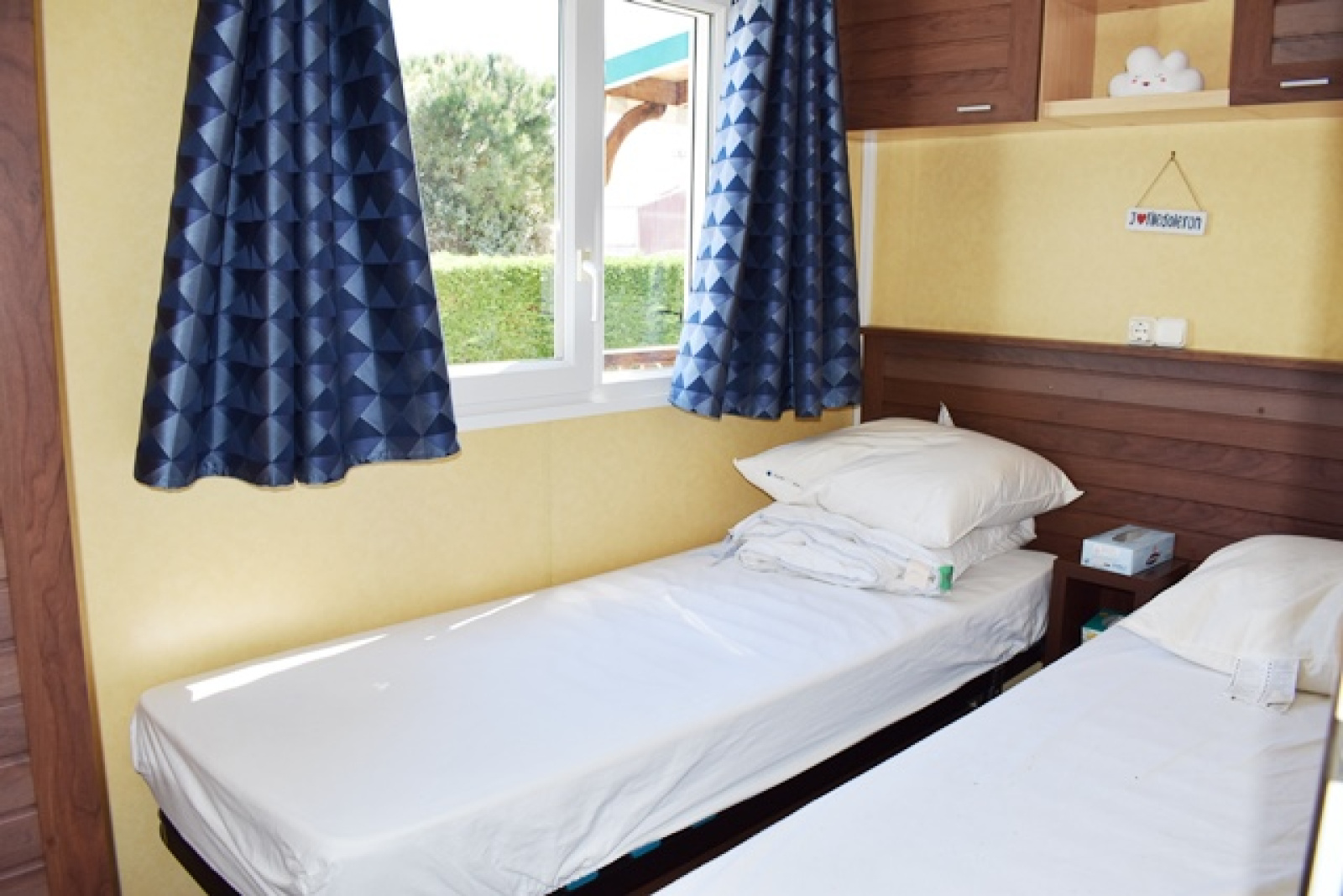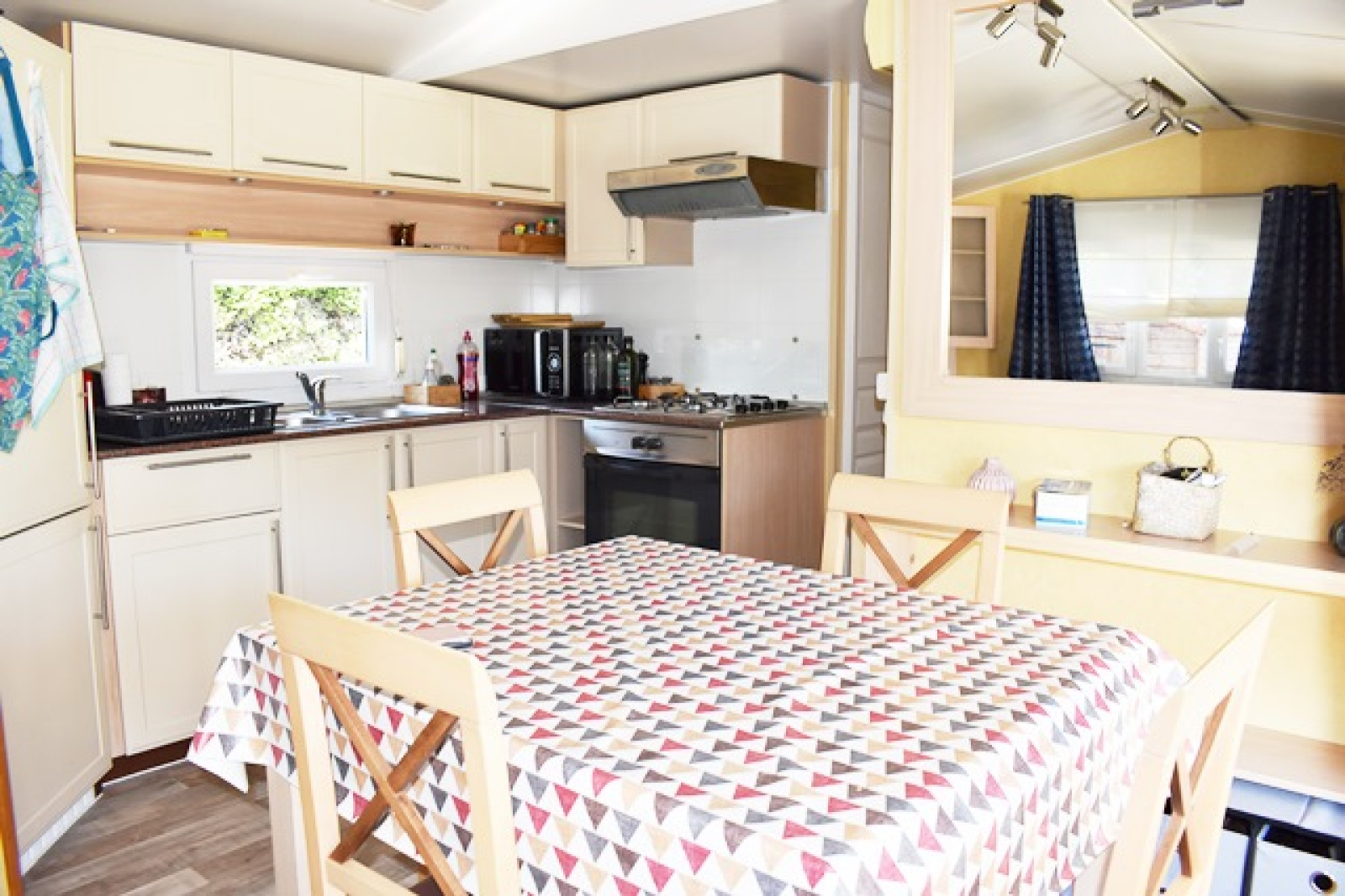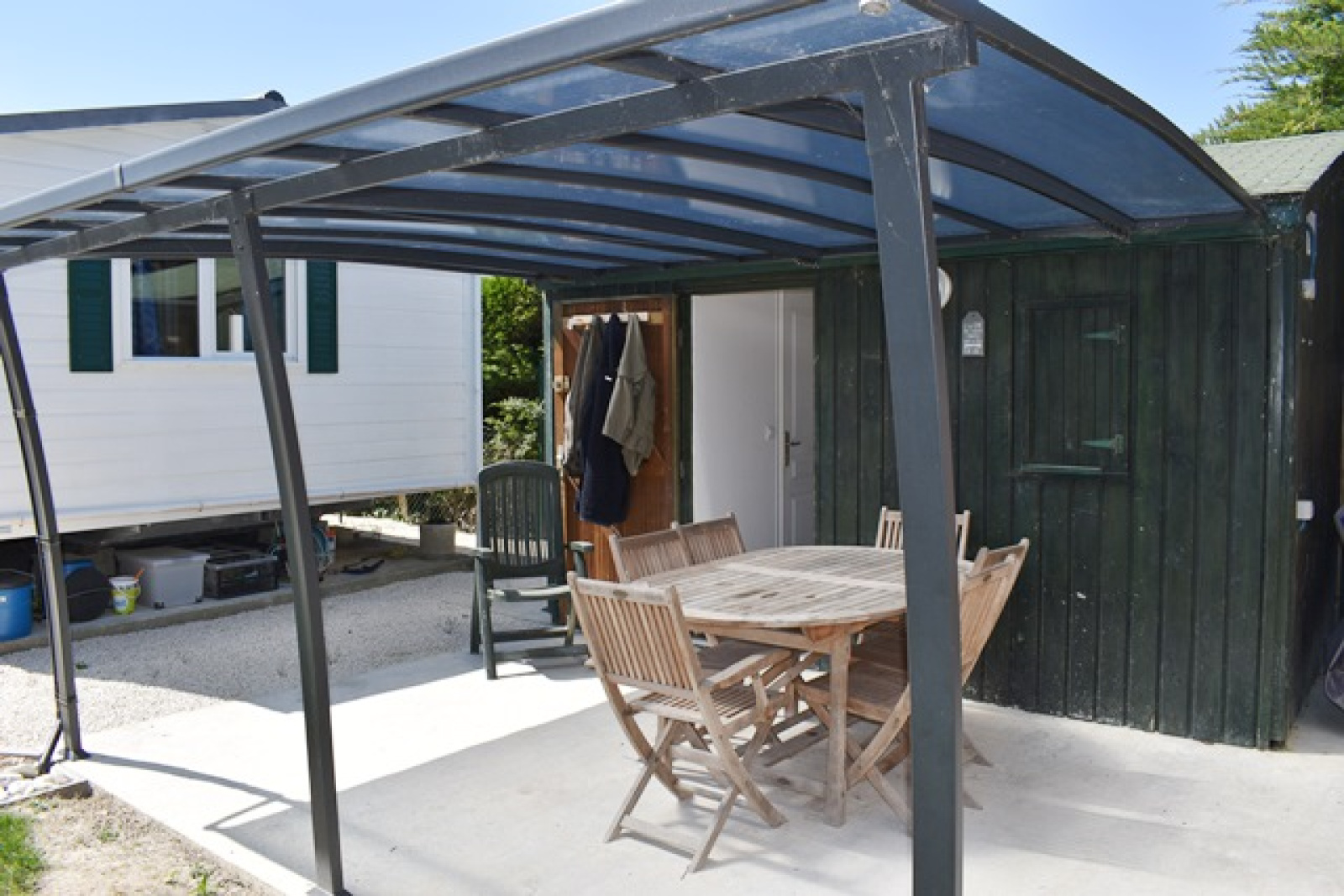 A 650m de la plage et 850m du marché, beau terrain de loisirs autorisé de 332m², cloturé, arboré et viabilisé eau, edf, tae comprenant un mobil-home en très bon état de 2006 (10mx4m) avec 2 chambres, un 2ème mobil-home (3mx6m), un sanitaire de 10m² comprenant un coin cuisine aménagée et une salle d'eau avec wc, une terrasse couverte de 12m² environ et un cabanon en bois de 5m² env.