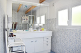 A 2 pas du port de plaisance et de la plage, cette agréable maison comprend une cuisine aménagée donnant sur un séjour, dégagement, deux chambres, une salle d'eau, un wc séparé, et une 3ème chambre en mezzanine. (Clim réversible dans le séjour et une chambre). Un abri de jardin. Belle terrasse exp sud. Jardin clos et arboré.