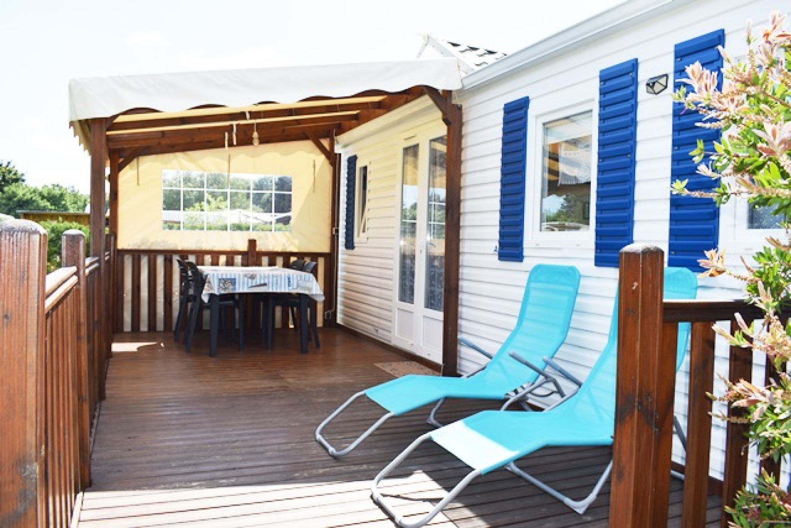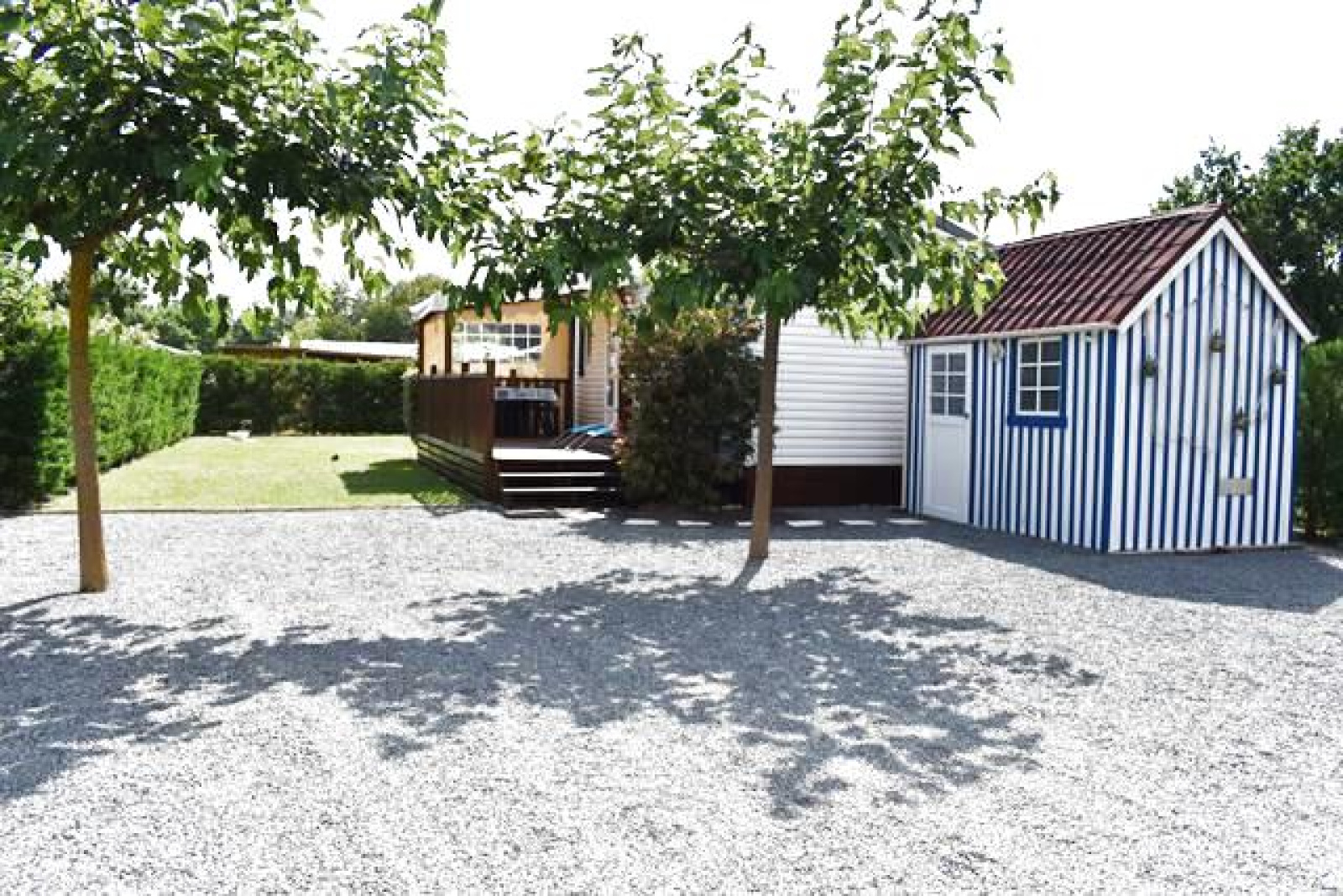 Entre St Pierre et La Perroche, terrain de loisirs clôturé et arboré de 500m², viabilisé Eau, Edf et assainissement individuel, comprenant un mobil - home en parfait état de 2015 et un abri de jardin de 6m².