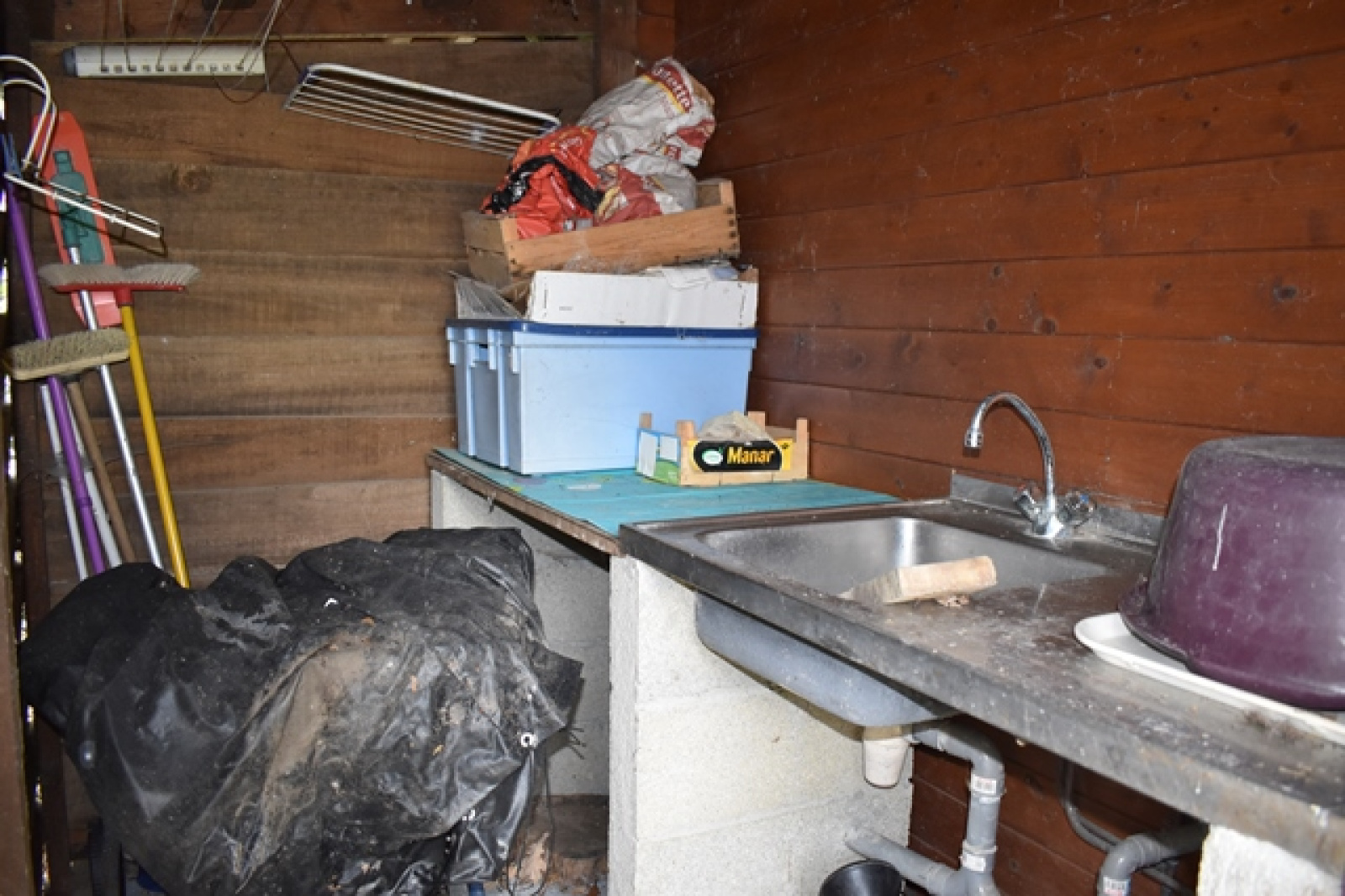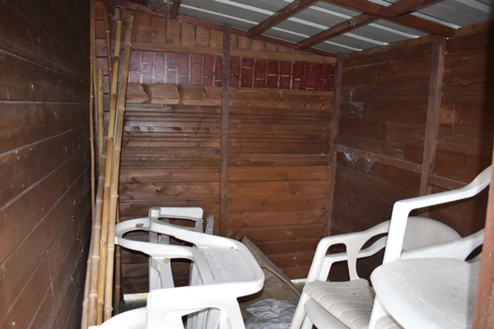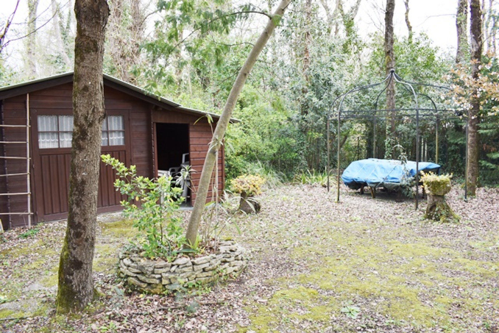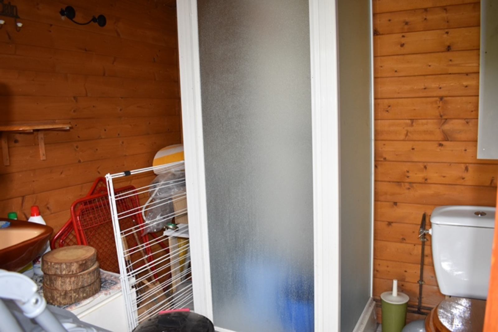 Entre St Pierre et La Perroche, terrain de loisirs clôturé et arboré de 489m² environ, viabilisé eau, edf et une fosse étanche, comprenant un mobil-home avec une terrasse couverte, un chalet avec lavabo, douche et wc, attenant deux appentis dont un avec un évier.