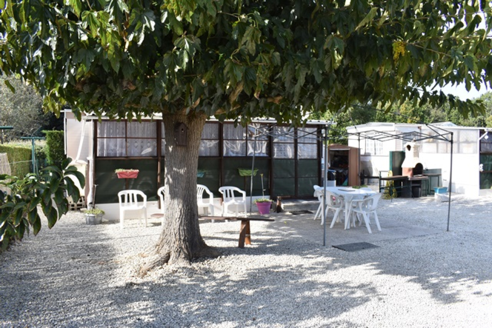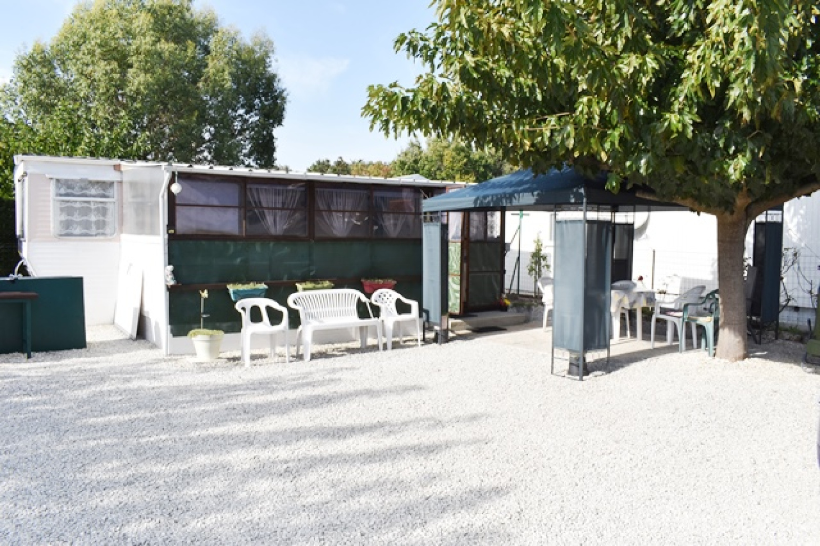 Entre St Pierre d'Oléron et La Perroche, terrain de loisirs arboré et clôturé de 369m², viabilisé eau, edf et tae comprenant deux mobil - homes avec terrasses fermées et couvertes, un abri de jardin et un bbq.