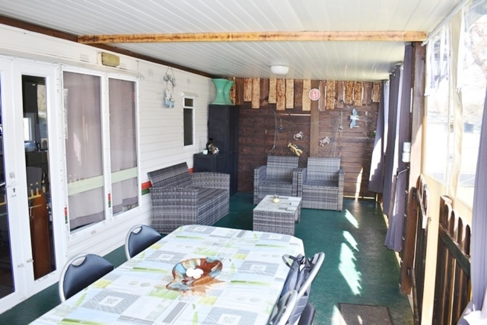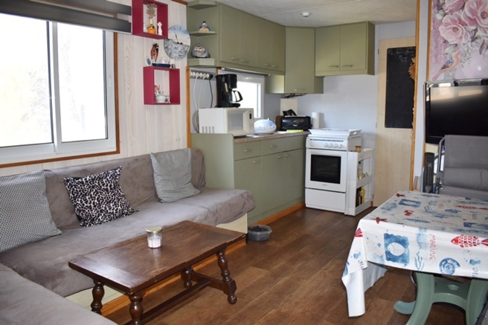 Entre St Pierre et La Perroche, terrain de loisirs clôturé et arboré de 306m² environ, viabilisé eau, edf et une fosse étanche de 4000L, comprenant un mobil-home en bon état avec une terrasse couverte et fermée (23m² env), un chalet de 9m² env avec coin cuisine, douche, wc et lavabo, un petit mobil-home servant de couchage (2 chambres) et une petite caravane.