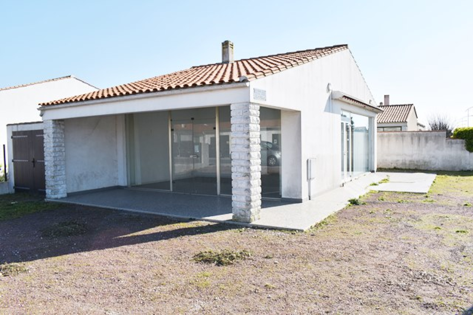 Face au marché, proche du centre du village et de la plage ce local de 55m² comprend une salle avec deux baies vitrées (1 avec un store banne), un sanitaire avec 2 lavabos, un wc et une douche séparés, une petite pièce, viabilisé eau, edf et tae. Parking.