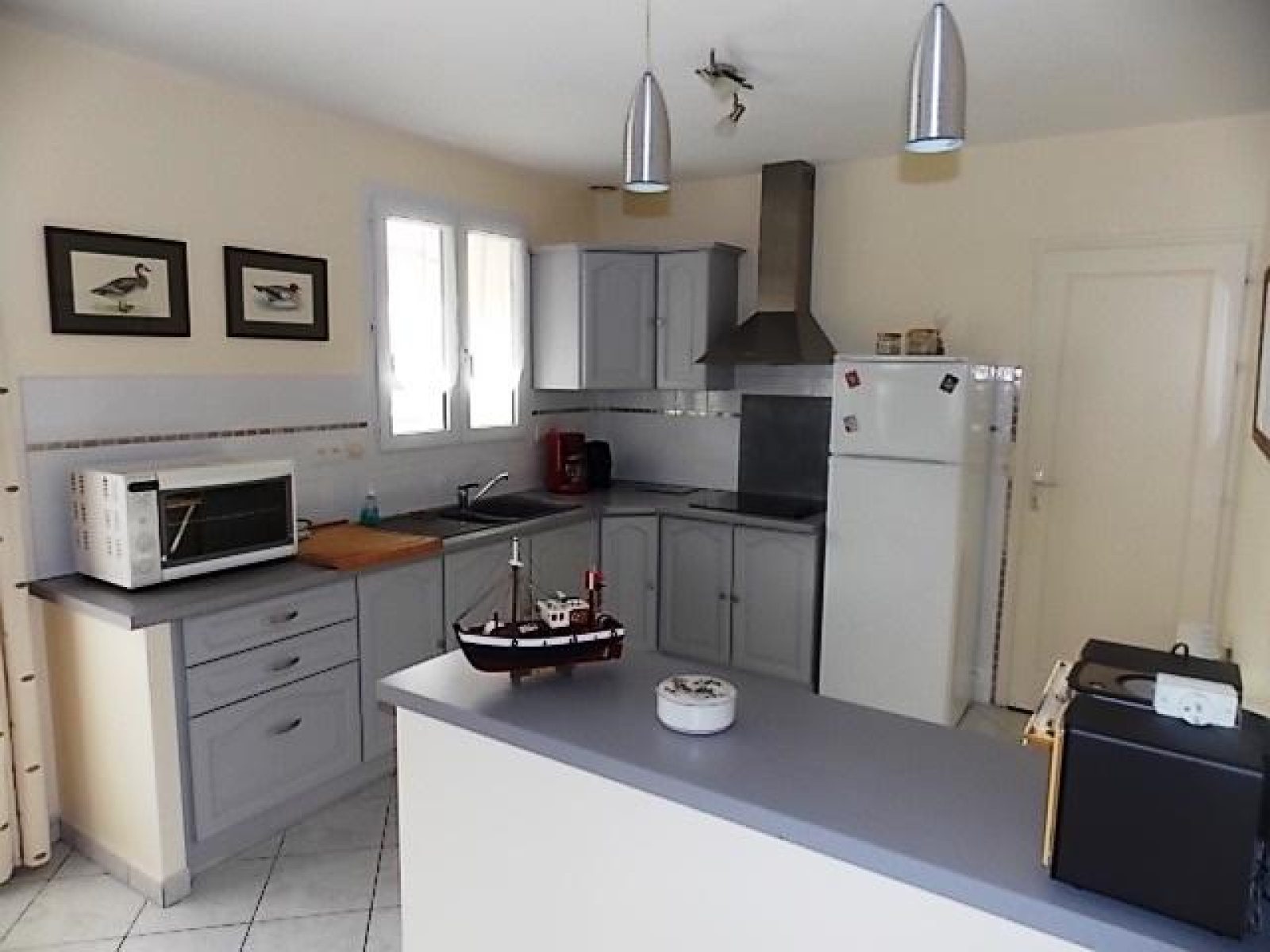 A 600m de la plage et 800m des commerces, cette maison au calme comprend un séjour avec un poêle à bois, une cuisine aménagée ouverte, deux chambres, une salle d'eau avec douche à l'italienne, un wc séparé, un garage carrelé, isolé ( couchage d'appoint), une terrasse carrelée couverte, exp sud et une 2ème terrasse dallée avec un store électrique. Le tout sur une terrain clos et arboré de 340m².