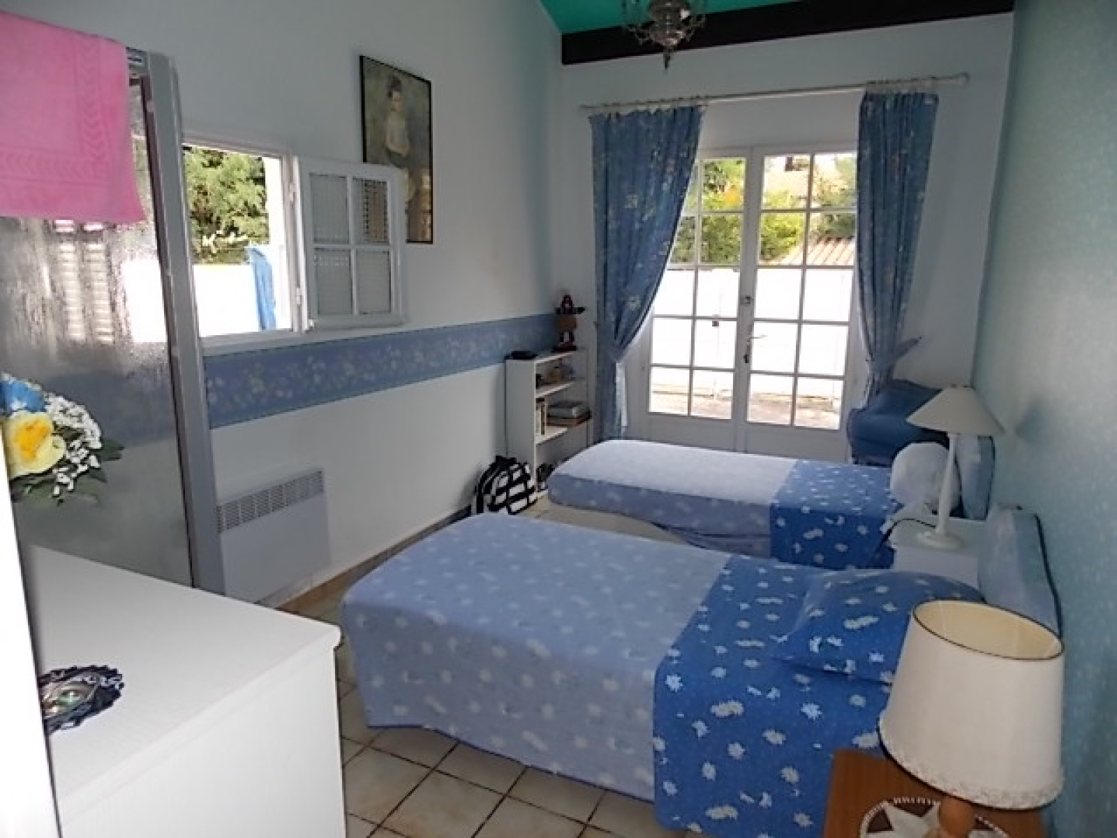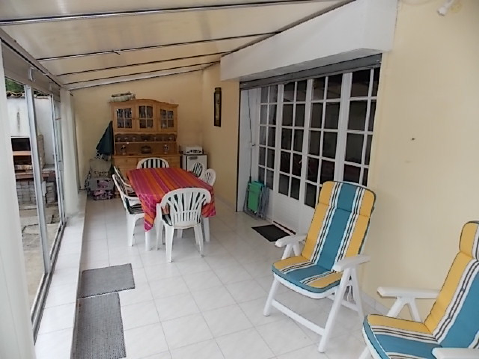 A 2 pas de la plage et 500m des commerces, cette maison au calme comprend un séjour avec une cheminée, une cuisine aménagée, une véranda avec stores, dégagements, trois grandes chambres dont une avec une douche, une salle d'eau, deux toilettes avec lave-mains, chauffage électrique, terrasse avec pergola, bbq, débarras et un garage de 22m² indépendant.