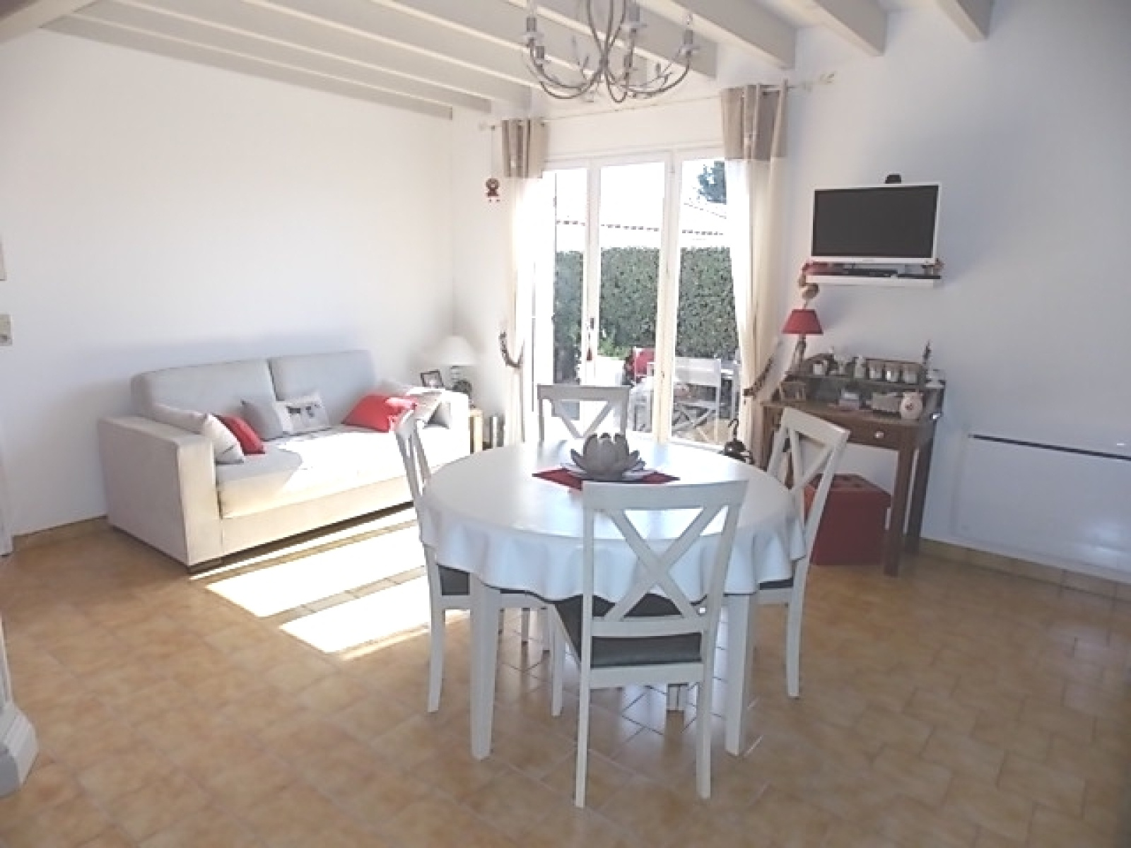 A 400m des commerces et 700m de la plage, cette maison joliment aménagée comprend une pièce de vie avec cuisine, un wc séparé, une salle d'eau, à l'étage un palier donnant sur deux chambres, chauffage électrique, attenant un garage avec point d'eau. Terrasse exp sud sans vis-à-vis, jardinet devant avec un emplacement pour la voiture et une 2ème place de parking à l'extérieur.