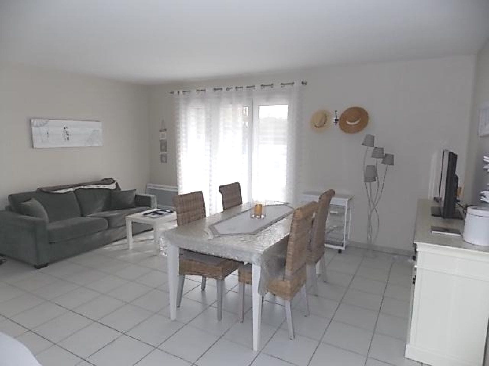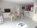A 600m de la plage et 850m des commerces, cette maison joliment décorée comprend une pièce de vie avec une cuisine aménagée américaine, deux chambres, une salle d'eau, un wc séparé et un garage à vélo de 6.10m² avec un galetas. Terrasse carrelée.