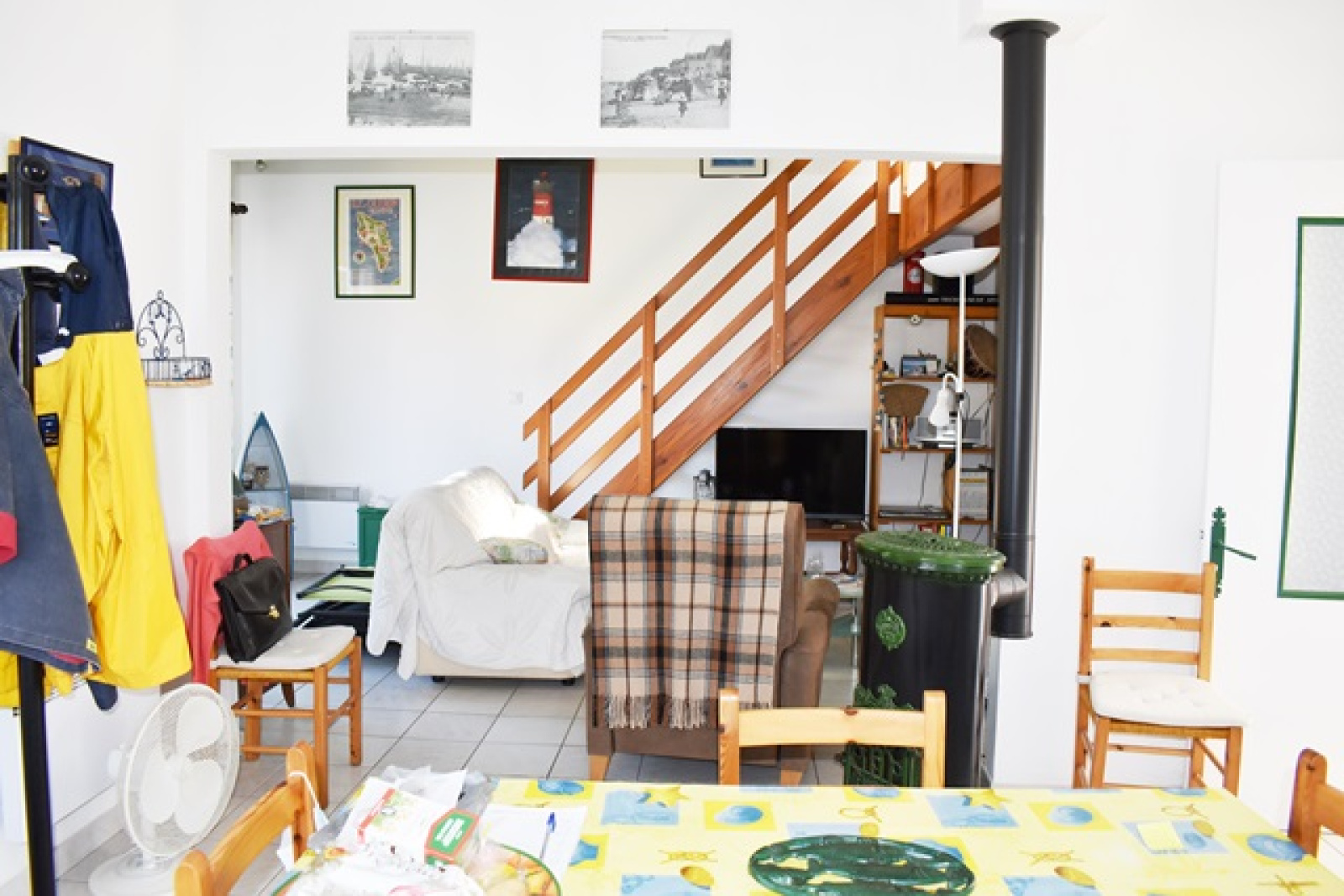 A 100m de la plage et 300m des commerces, cette maison de pays comprend une cuisine aménagée, un salon avec un poêle à bois, dégagement, deux chambres dont une avec sa petite salle d'eau, une salle d'eau, un wc séparé, à l'étage une mezzanine pour un 3ème couchage, indépendant un atelier de 15.50m² avec un galetas. Très beau terrain avec un puits.