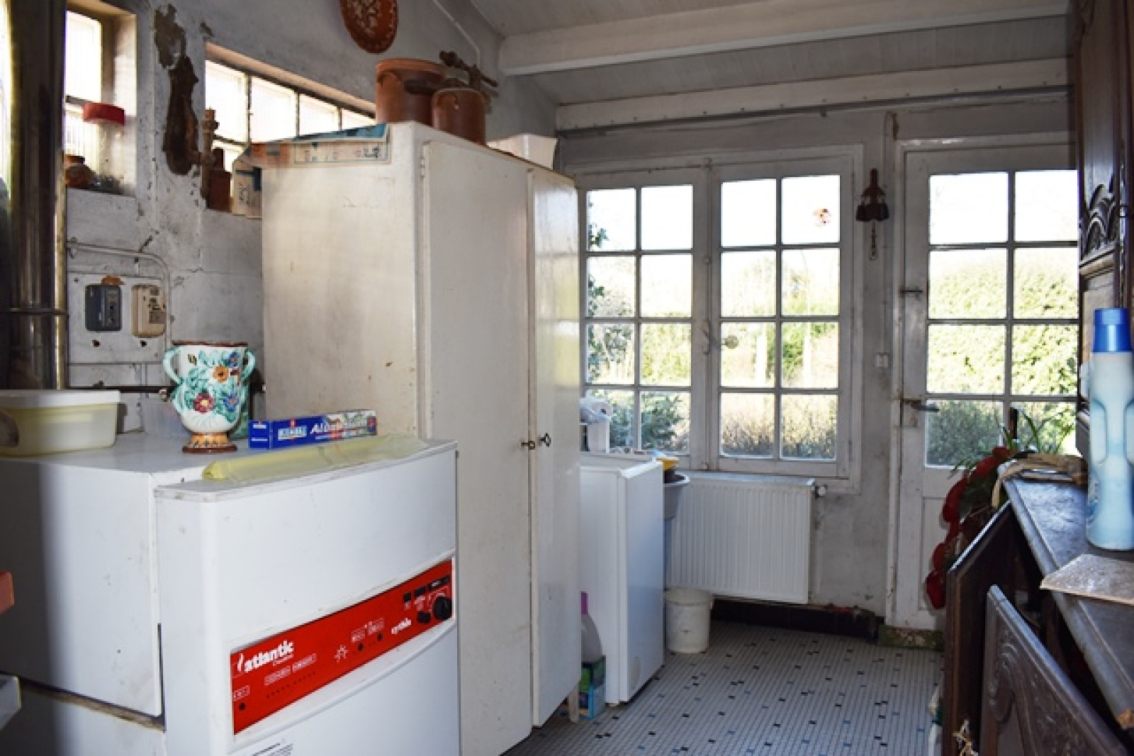 Proche des commerces et de la plage, cette maison à rénover comprend une pièce de vie avec une cheminée, une cuisine, une buanderie/chaufferie, deux chambres dont une avec sa salle d'eau, wc et la 2ème avec un lavabo et wc. Une dépendance de 28m² et un garage de 24m² env. Beau terrain clos et arboré.