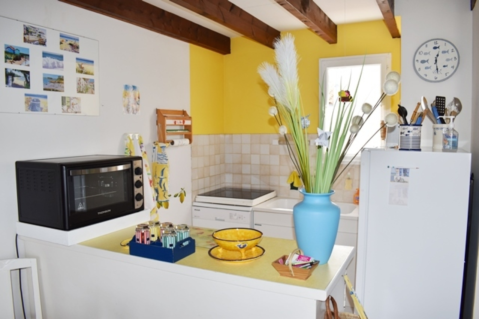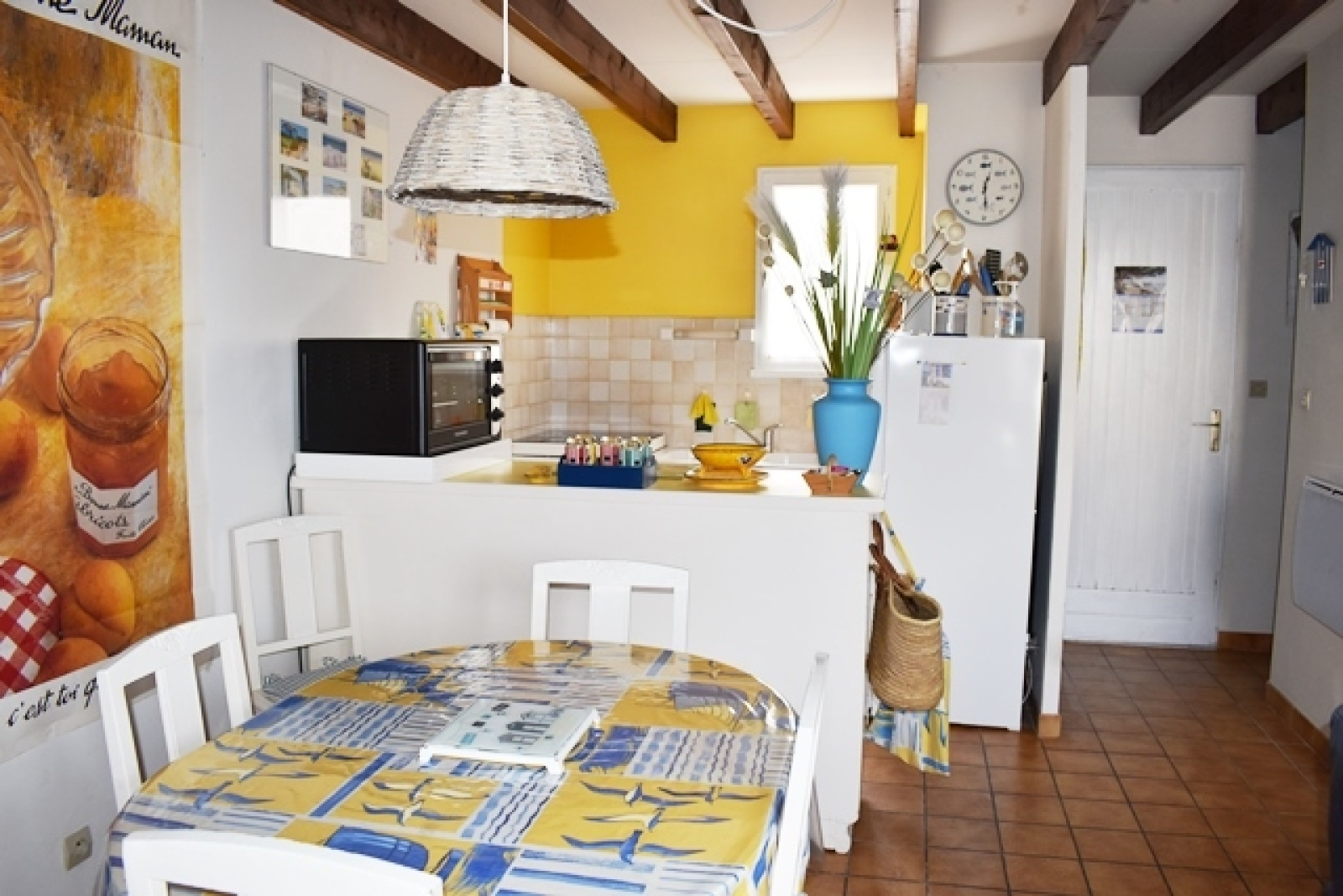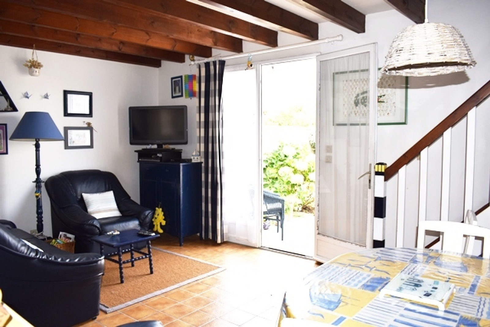 A 200m des commerces et 300m de la plage - cette maison de vacances comprend une entrée, un séjour avec un coin cuisine aménagée, une salle d'eau, un wc séparé, A l'étage: deux chambres et une mezzanine (3ème coin couchage). Attenant un garage avec un galetas, une terrasse de 15m² avec un store manuel + un jardin de 80m² env, emplacement parking.