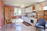 A 500m de la plage, cette maison de 70m² env comprend une pièce de vie avec une cuisine aménagée, un cellier, dégagement, deux chambres, une salle d'eau, un wc séparé. Terrasse avec un store-banne et un abri de jardin. Terrain clos et arboré de 420m².