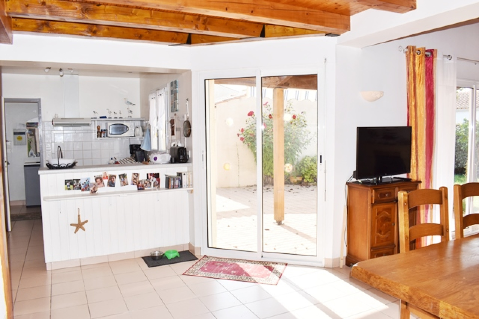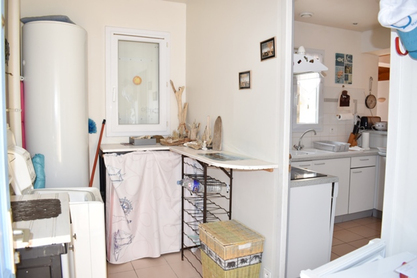 A 600m des commerces et 500m de la plage, cette maison de 93m² env comprend un cellier, une cuisine aménagée ouverte sur un séjour/salon avec une cheminée-insert, une chambre, une salle d'eau + baignoire, un wc séparé, à l'étage un palier donnant sur deux petites chambres, un wc séparé et un cabinet de toilette. Indépendant un garage de 19.50m² env, terrasse couverte et bbq.