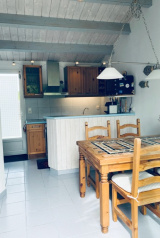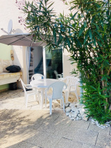 A 700m du marché et de la plage, cette maison mitoyenne de 73m² env vendue meublée comprend une cuisine aménagée, un cellier, un salon avec une cheminée ouverte, un wc séparé, une salle d'eau, une chambre, à l'étage une mezzanine (coin couchage or bureau) et une autre petite chambre. Terrasse avec un bbq, un abri de jardin, un petit appenti à bois.