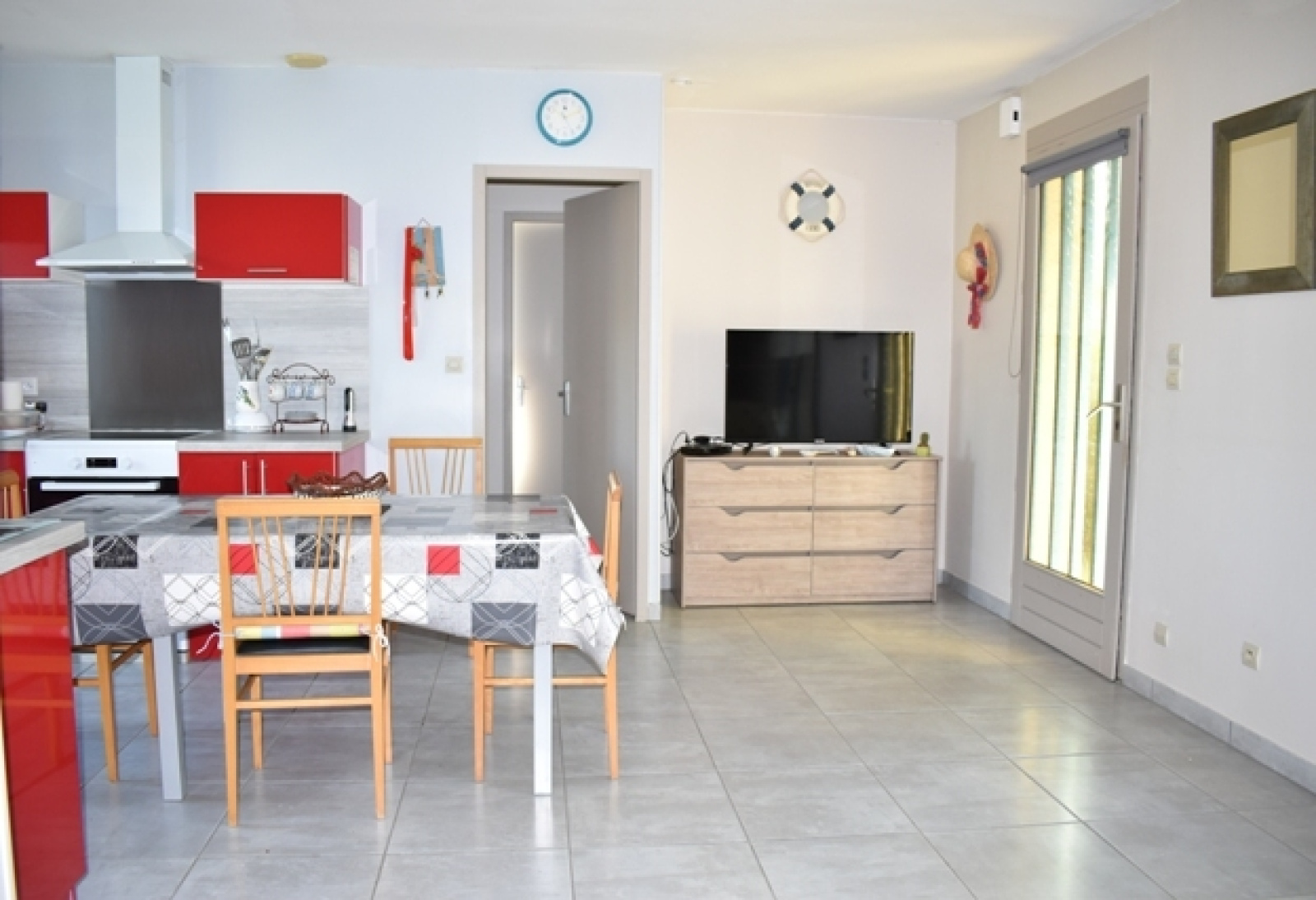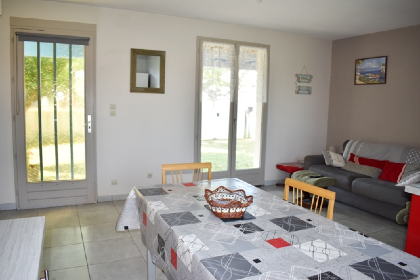 A 500m du marché et 700m de la plage, cette maison comprend une pièce de vie avec une cuisine aménagée ouverte, dégagement, deux chambres, une salle d'eau, wc séparé, chauffage électrique; attenant un préau et un cellier. Jardin clôturé et arboré.
