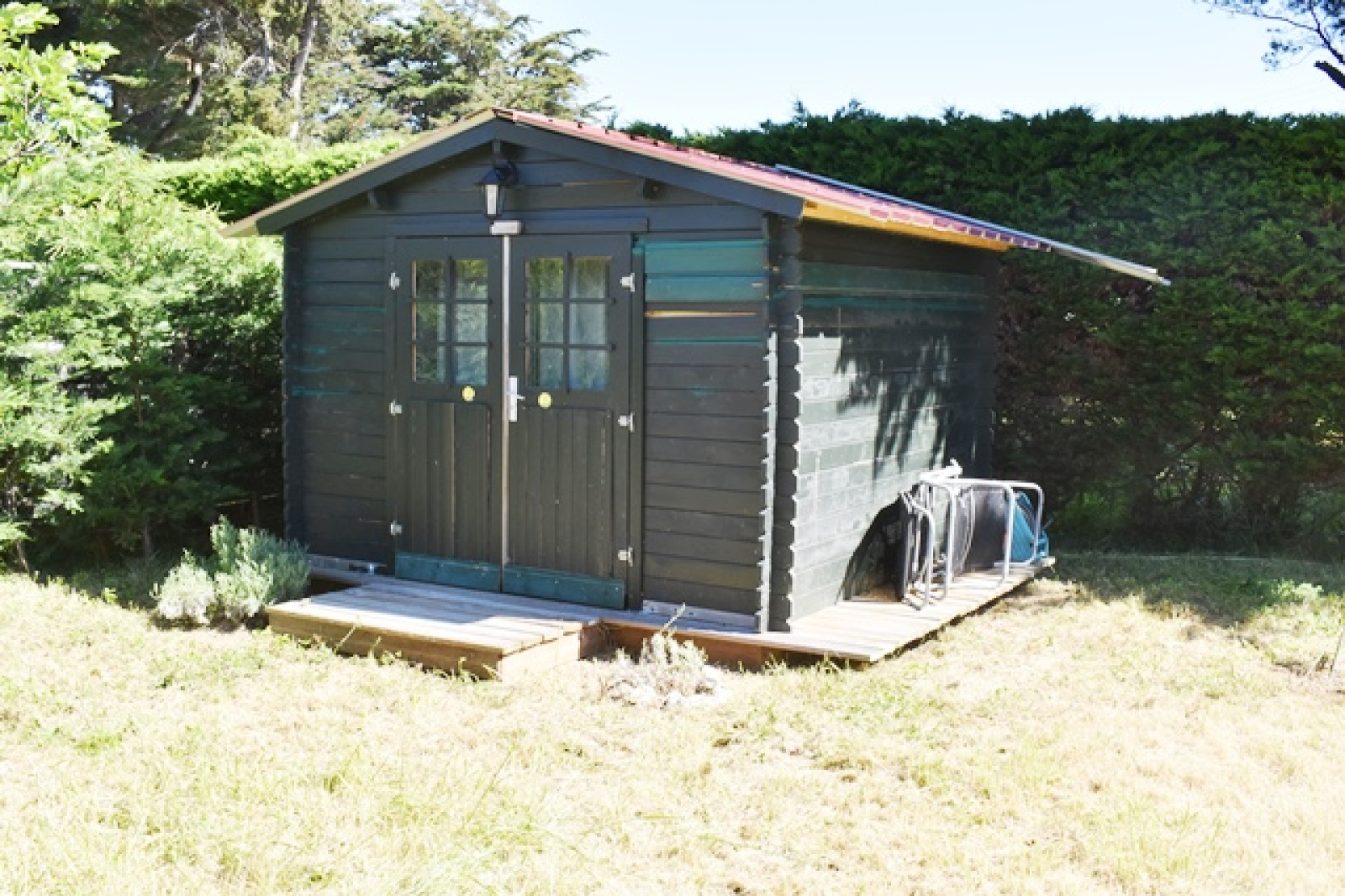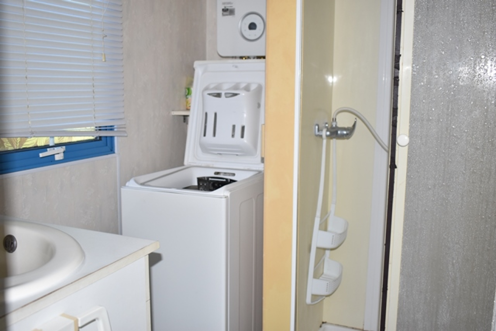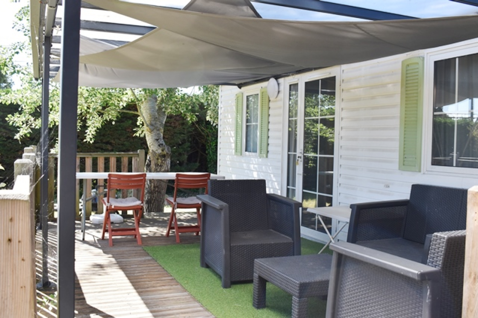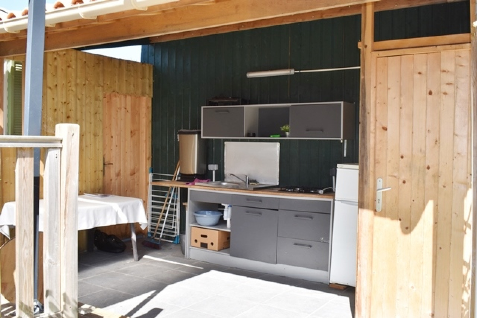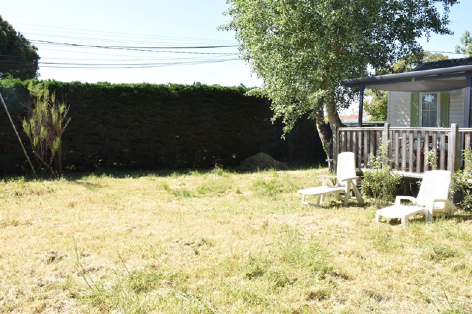 A 500m de la plage, terrain de loisirs viabilisé, eau, edf et tae comprenant un mobil-home (2 chambres) avec une clim réversible, une terrasse couverte 19m² env, un préau carrelé avec une cuisine d'été et un wc séparé, un chalet de 7m² env (chambre avec une petite clim) . Beau terrain clos et arboré de 612m².