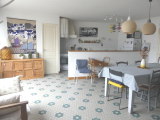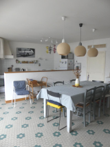 A 400m de la plage, cette maison de pays typique comprend, un grand séjour avec une cuisine ouverte, un salon avec une cheminée, 4 chambres, deux salles d'eau dont une avec wc, un 2ème wc séparé, un cellier, un patio de 21m², une cour exp sud de 74m² avec un puits.