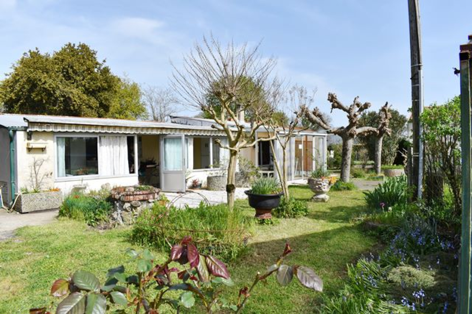 A deux pas des commerces, très beau terrain clos et arboré de 1628m² au calme. Possibilité de diviser en 2 lots, dont une construction en préfabriquée comprenant une cuisine, un séjour, deux petites chambres, un 2ème séjour, une salle de bains, un wc séparé, une véranda, attenant un garage à vélo, indépendant un hangar de 80m² env vétuste (parpaings et tôles).