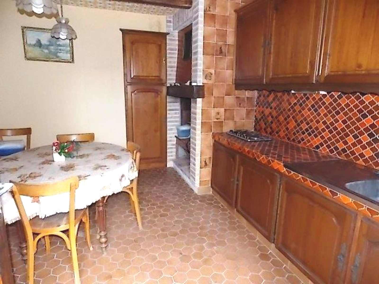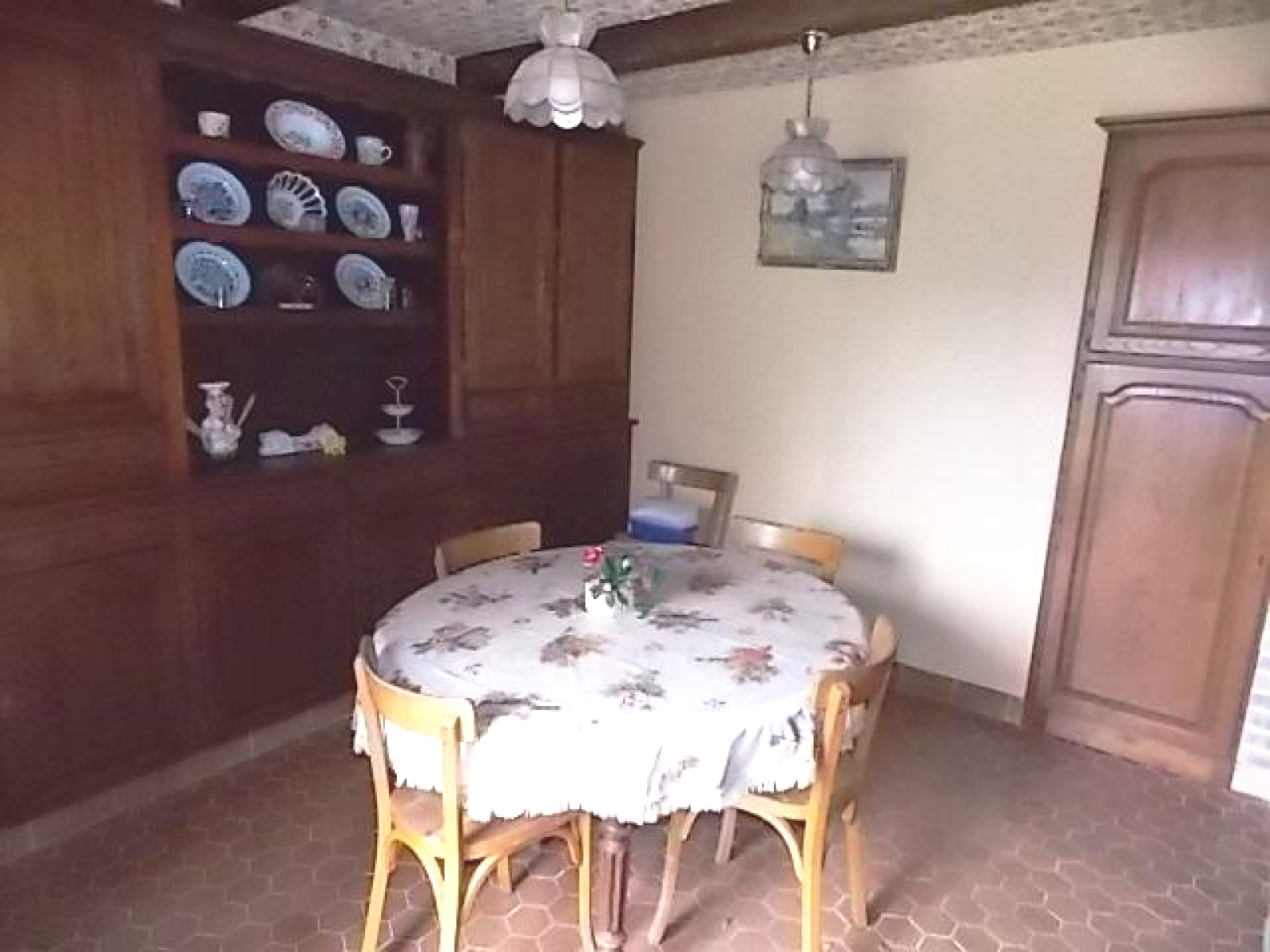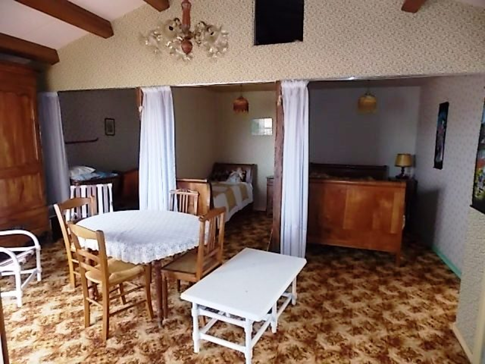 A 600m de la mer et 1.8km des commerces, cette maison de pays atypique comprend un séjour avec une cheminée - insert, une kitchenette, un cellier, une salle de bains + une douche, un wc séparé, à l'étage un dégagement desservant un salon donnant sur un balcon de 6.50m², un cabinet de toilette, un wc séparé, une chambre avec lavabo, trois coins couchage. Attenant une cuisine aménagée avec une cheminée.