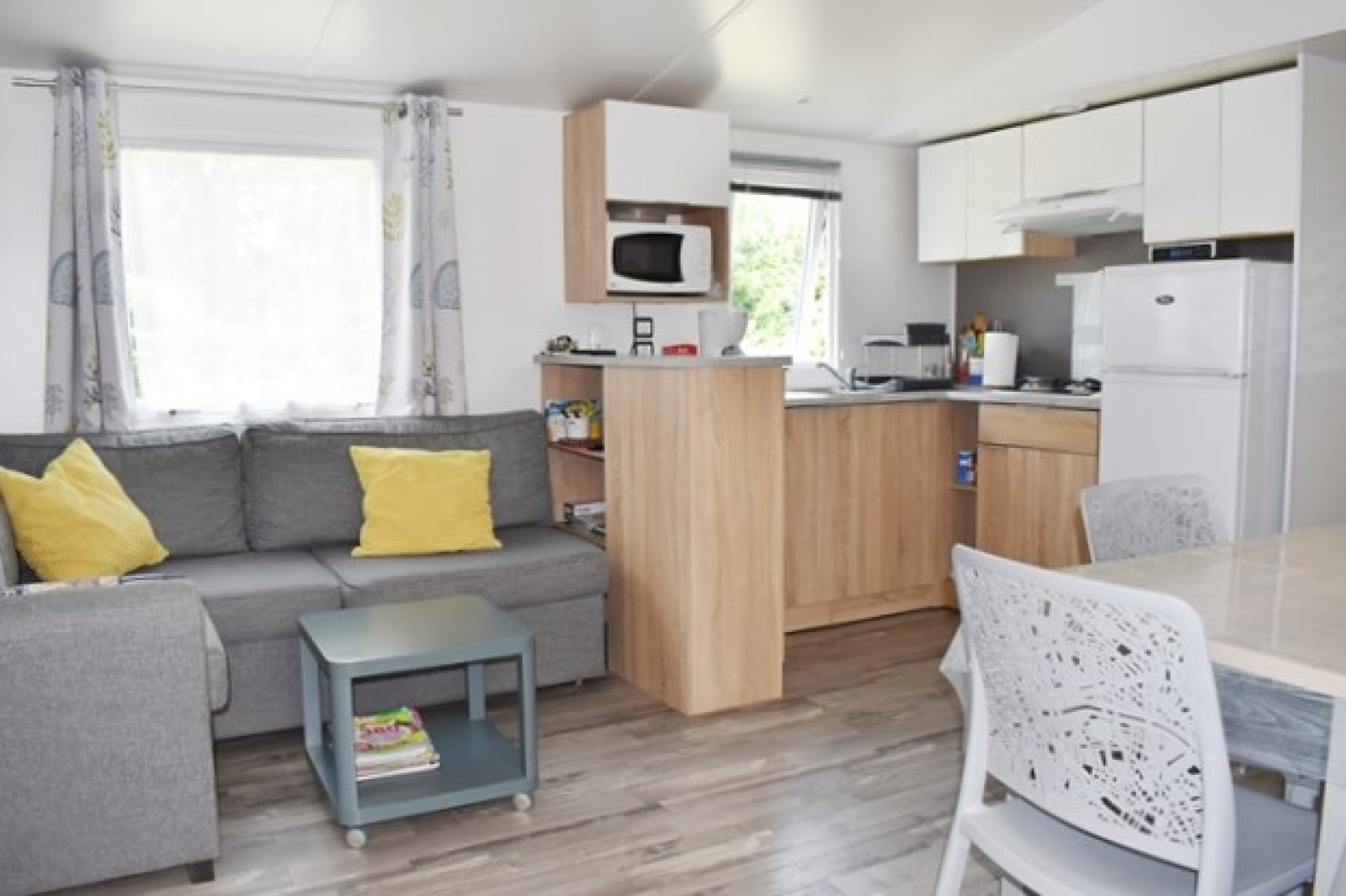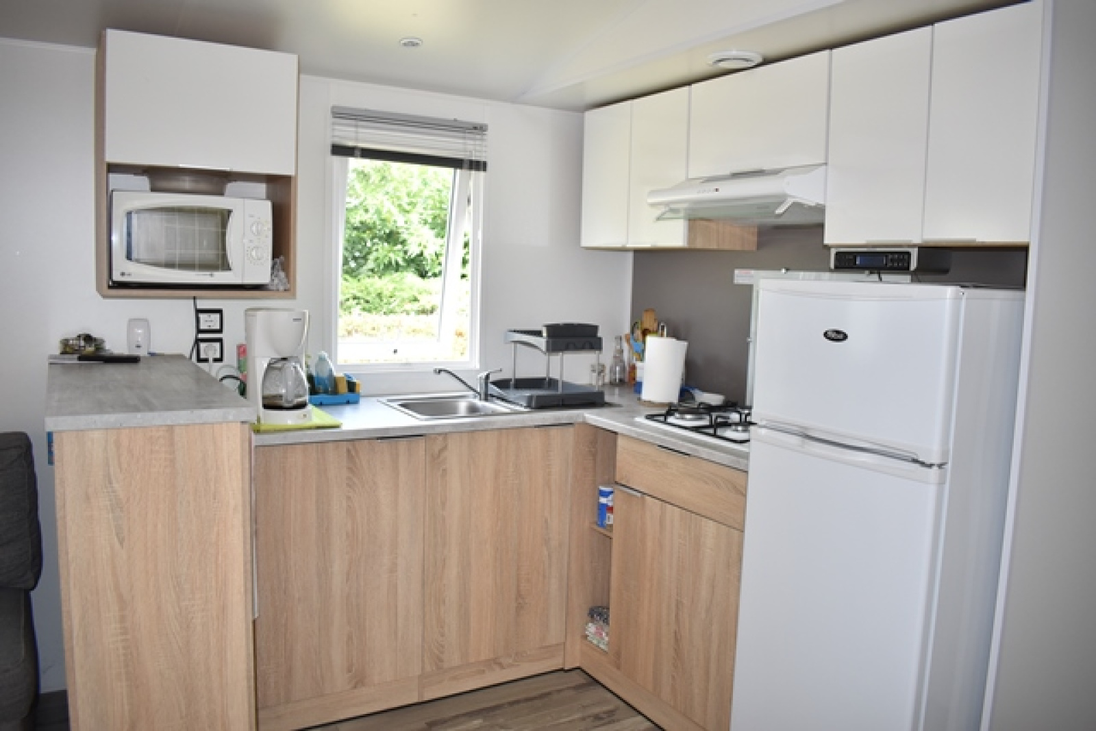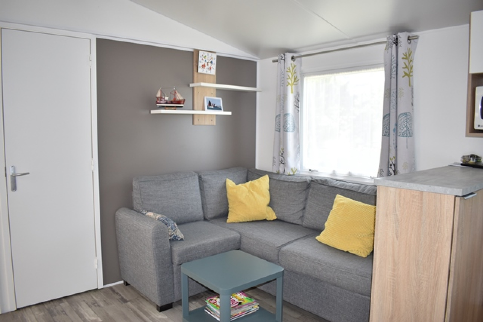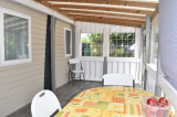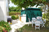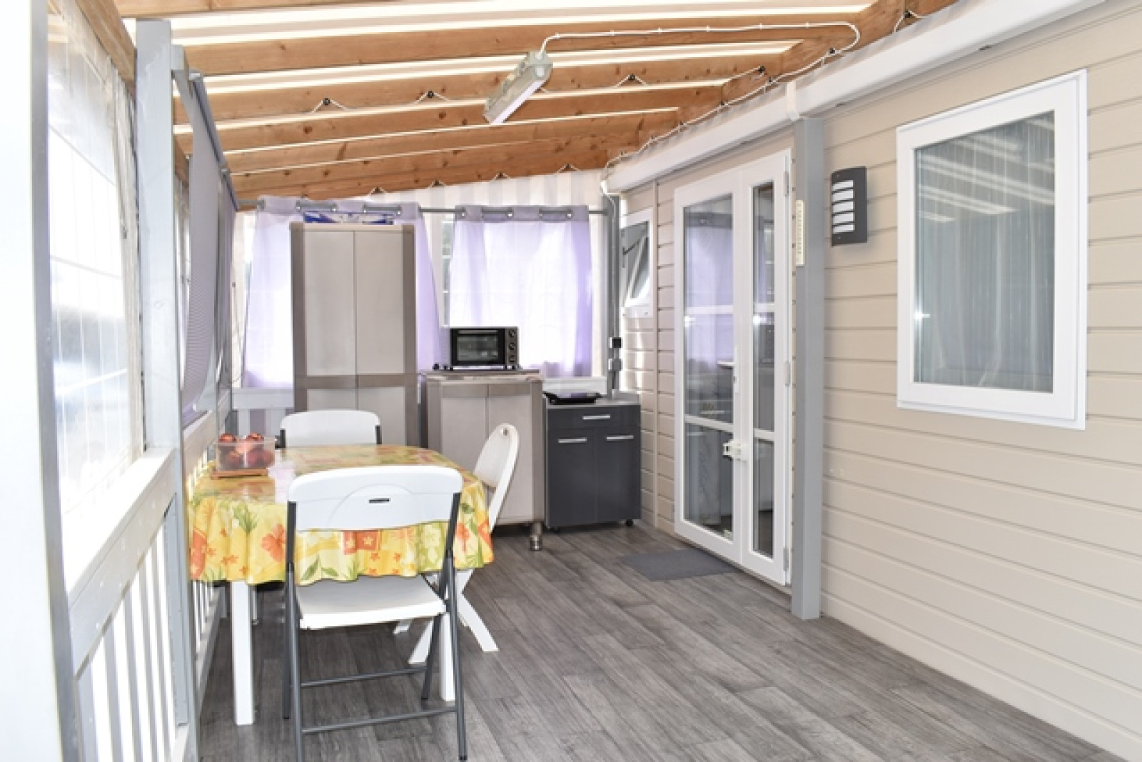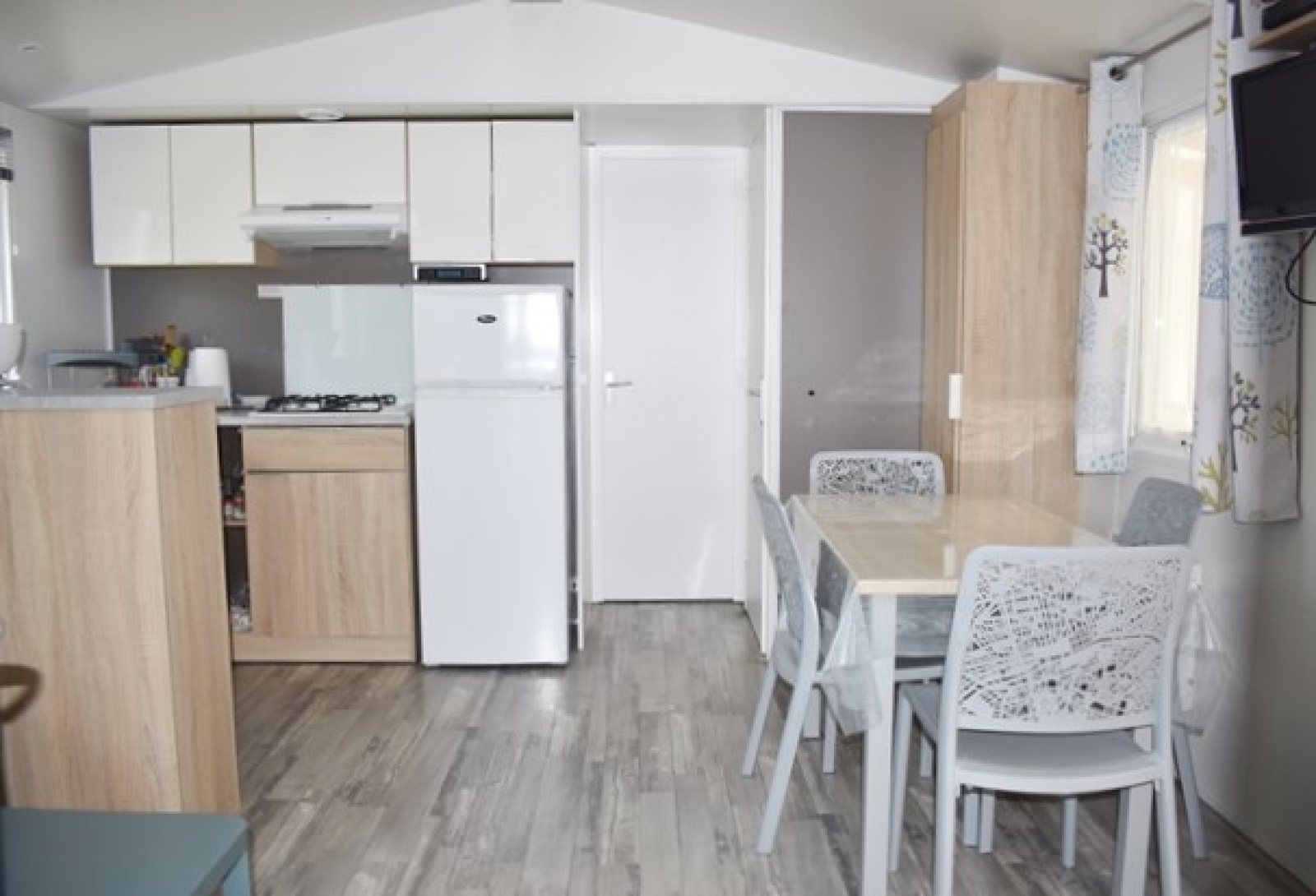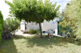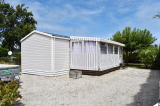 Au calme, à 600m de la plage, beau terrain de loisirs de 300m², clôturé et arboré, viabilisé eau, edf, tae, comprenant un mobil-home de 2017 avec une terrasse fermée et couverte de 15m², un cabanon en bois de 9m² et un forage avec une pompe électrique.