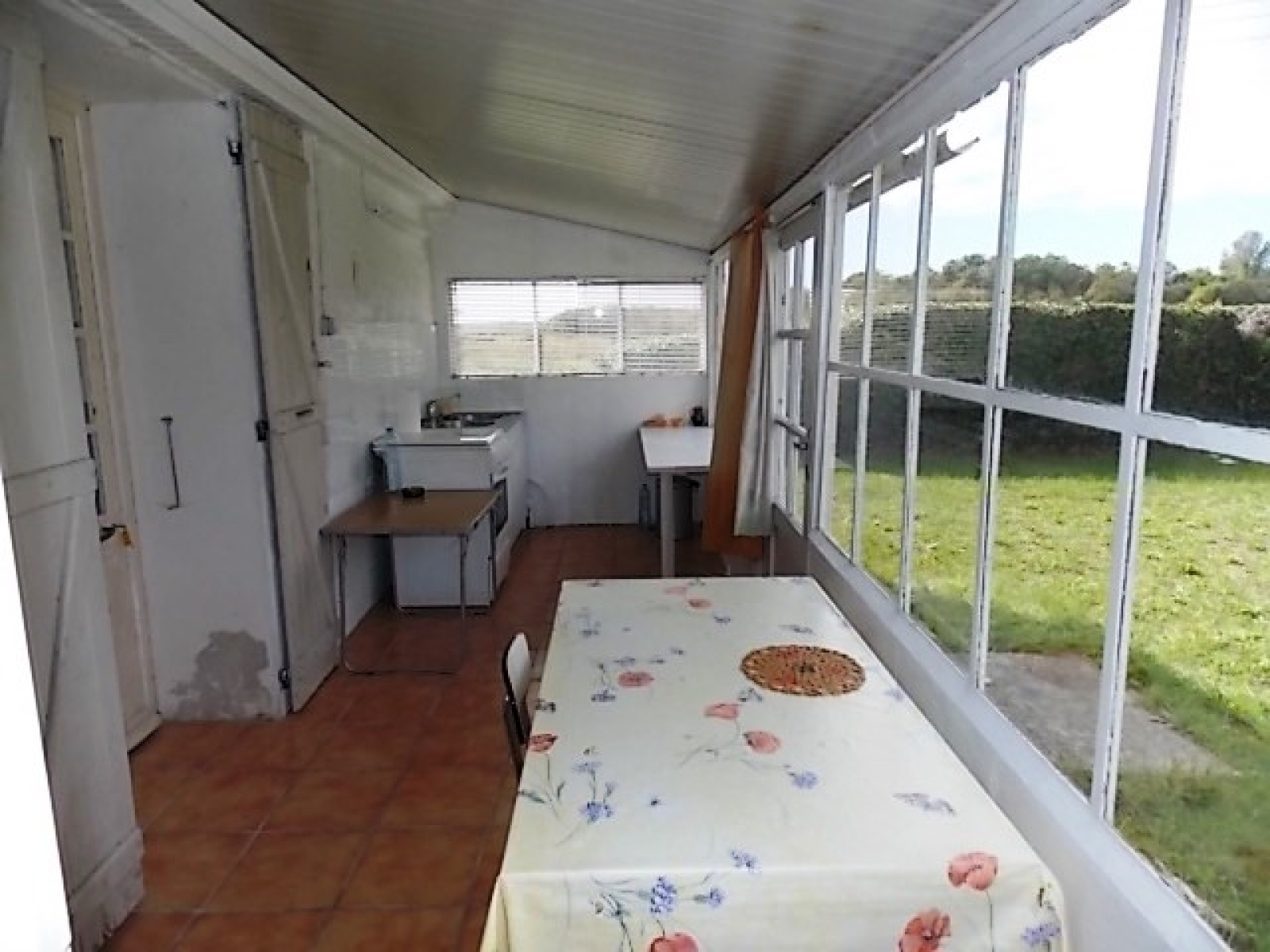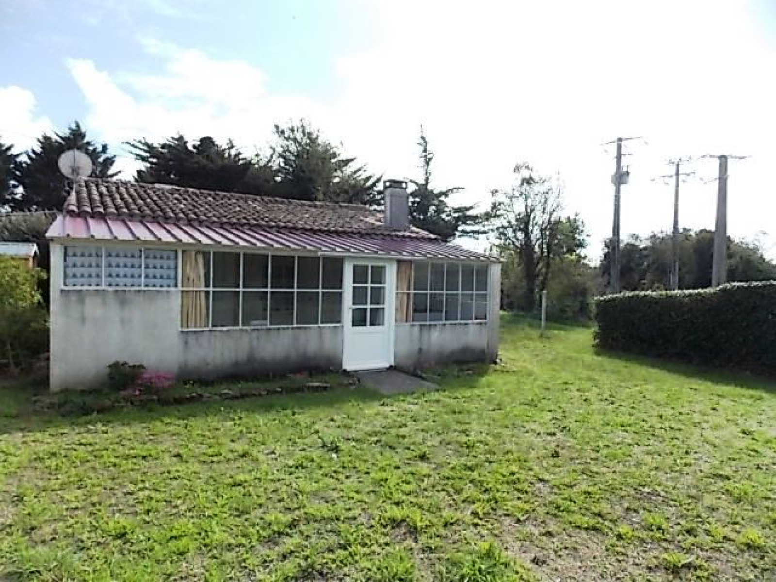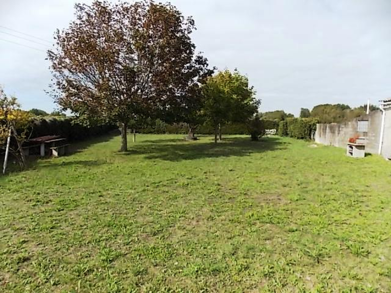 A 3km des commerces et de la plage, au calme, terrain agricole de 850m² viabilisé eau, edf et une fosse étanche de 3000L, comprenant un bâtiment en pierres à usage d'habitation de 42m² environ avec une pièce de vie, une véranda avec coin cuisine, une chambre, un lavabo séparé, indépendant, un wc séparé, une douche et un débarras de 6.60m², beau terrain clos et arboré avec un puits.