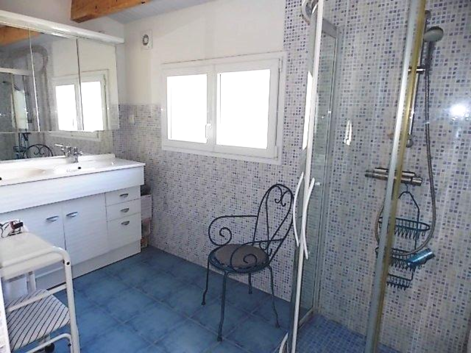 A 300m de la plage et à deux pas du port de plaisance, cette maison au calme comprend un grand séjour lumineux avec une cuisine ouverte, dégagement, une chambre, une salle d'eau, wc séparé avec lave-mains, à l'étage une grande mezzanine. Terrasse exp sud. indépendant un garage à vélo. Beau terrain clos et arboré.