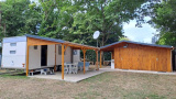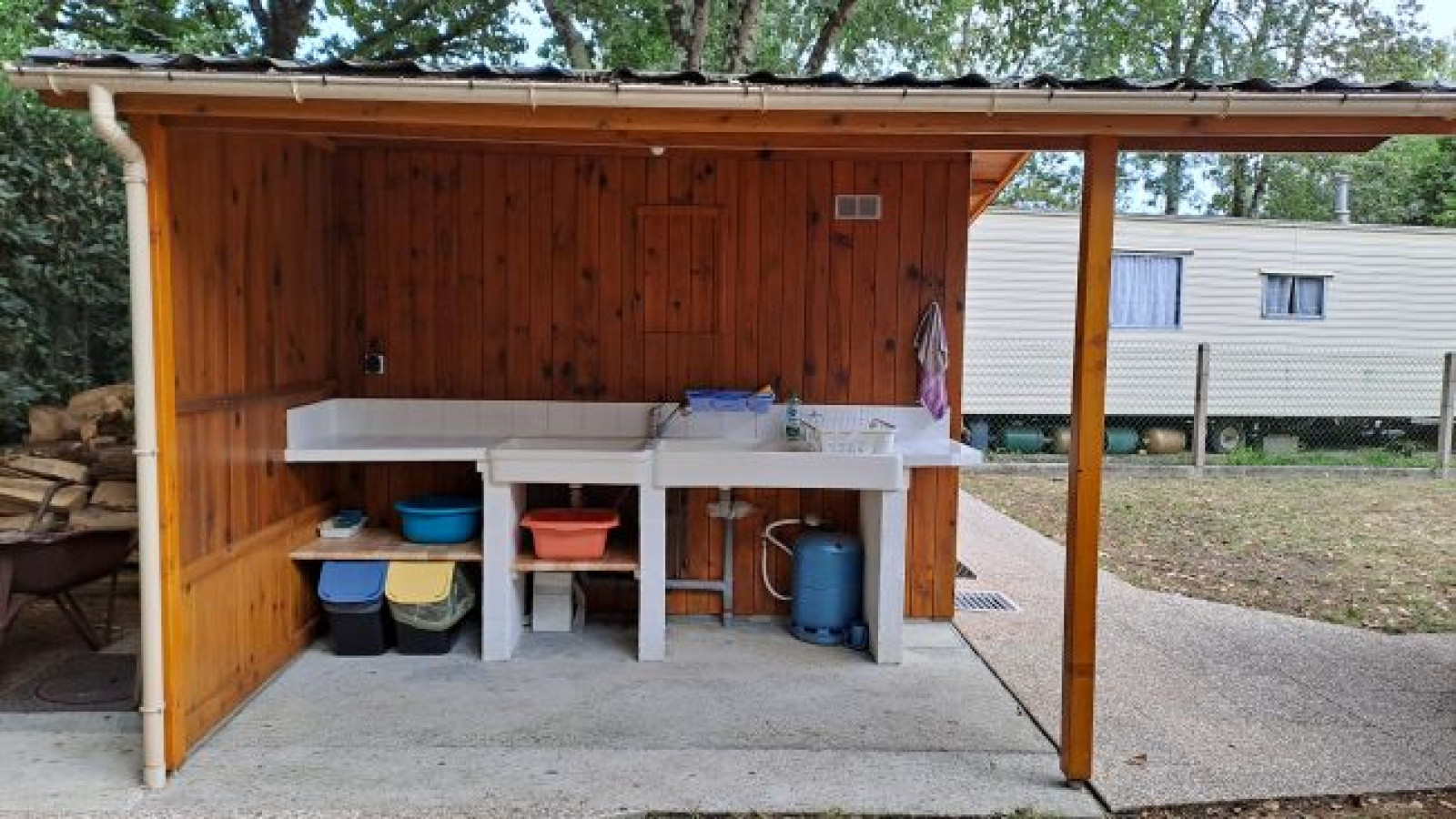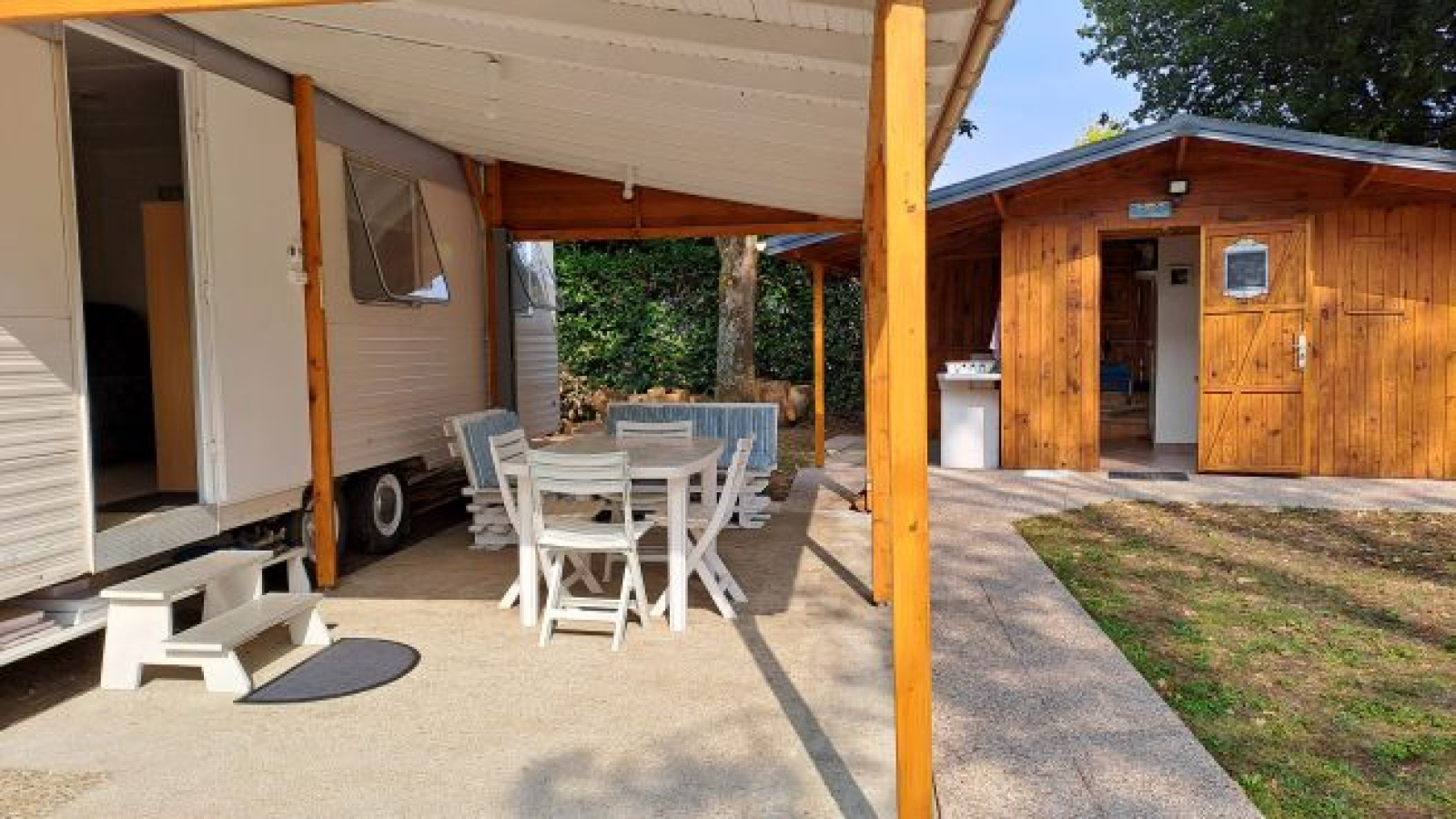 Entre St Pierre et La Perroche, terrain de loisirs clôturé et arboré de 300m², viabilisé Eau, Edf et une fosse septique avec épandage, comprenant une caravane en très bon état avec un auvent, un évier extèrieur, un chalet avec un coin cuisine, une salle d'eau, wc séparé et un débarras.