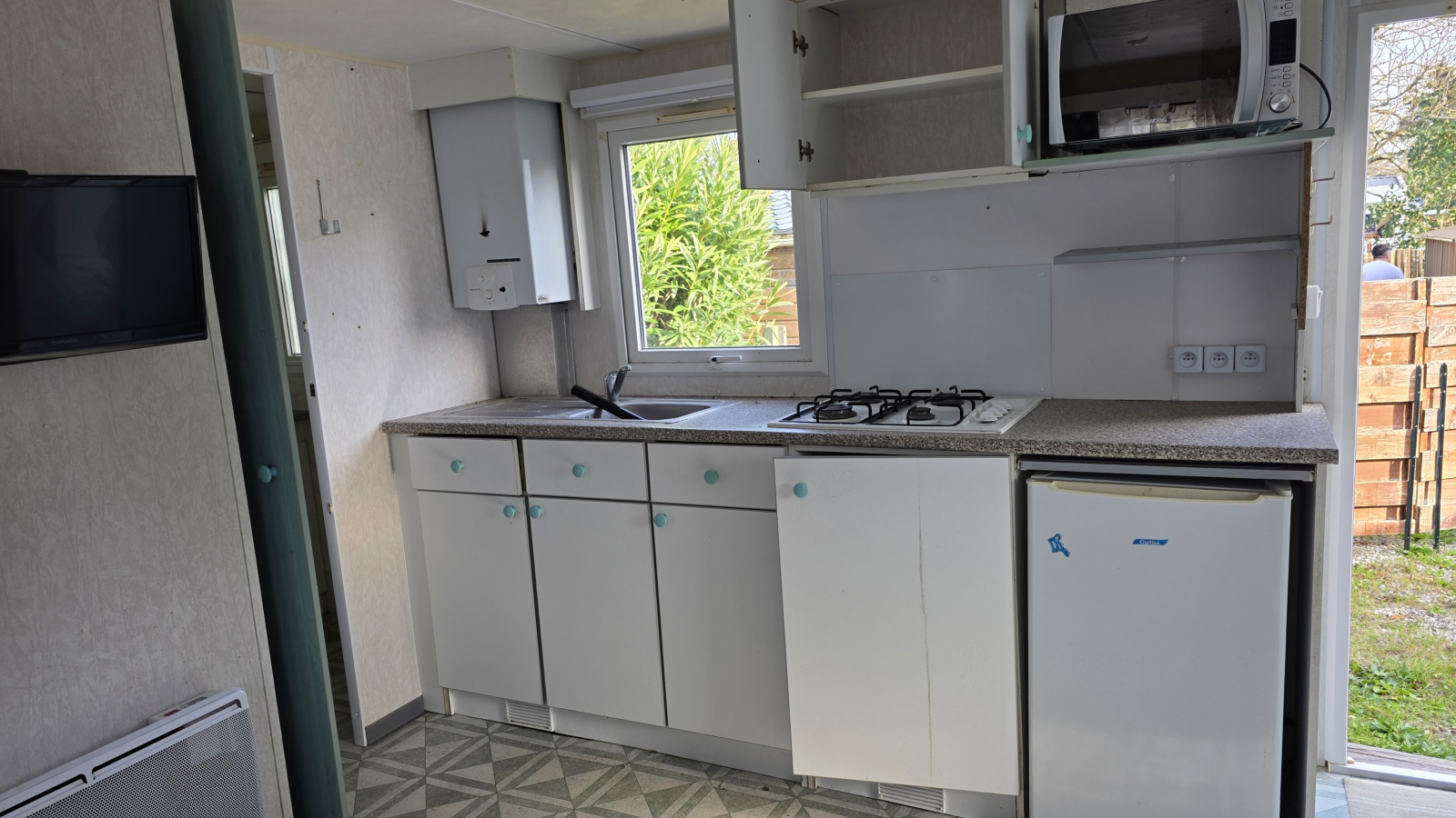 Entre St Pierre et la Perroche, terrain de loisir au calme arboré et clôturé, viabilisé eau, edt et tae comprenant deux mobils-home dont un avec une extension isolée. Un abri de jardin et un chalet en mauvais état. Travaux à prévoir en général.